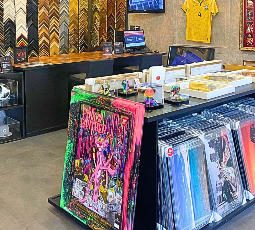 É uma opção para emoldurar objetos especiais permitindo destacá-los na parede. Há diversas opções de molduras e profundidade
